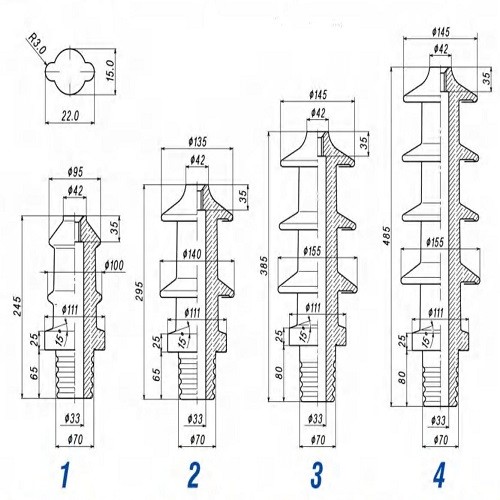 Post Insulators and Standoff Insulators: Used for supporting and insulating internal and external components within transformer assemblies.
