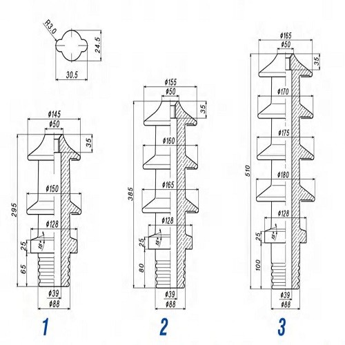 Post Insulators and Standoff Insulators: Used for supporting and insulating internal and external components within transformer assemblies.